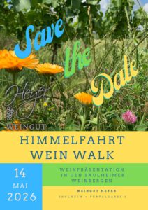 willkommen im Weingut Heyer Termine und events unsere öffnungszeiten Unsere Weine Vinothek Messweine Unsere Öffnungszeiten Dienstags, 16:00 bis 18:00 UhrDonnerstags, 16:00 bis 18:00 UhrSamstags, 10:00 bis 13:00 Uhr oder rufen Sie uns an unter +49 6732 4877 Weinpreisliste Termine und Events Kontakt